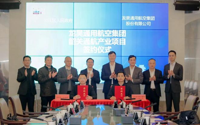 近日,韶关市人民政府、龙浩航空产业投资有限公司合作框架协议暨龙昊通用航空集团韶关通航产业项目签约仪式在市区举行。龙浩国际控股(广东)有限公司党委书记贾子良,龙浩航空产业投资有限公司董事长林嘉豪,龙昊通用航空集团股份有限公司董事洪楠,副市长肖智勇出席仪式。