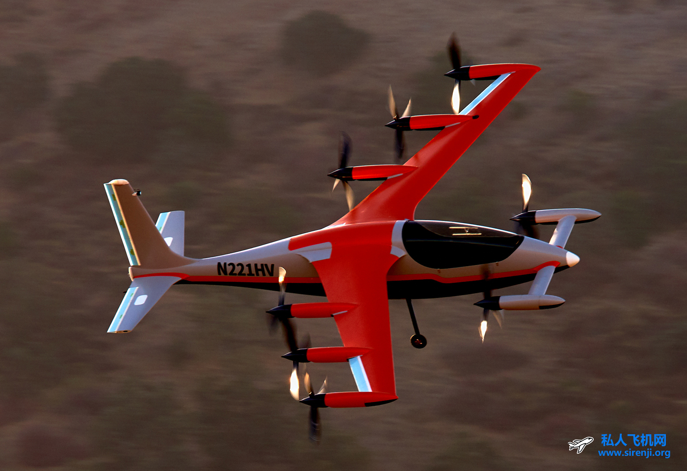 谷歌小鹰eVTOL 飞机共有八个螺旋桨。主翼上有六个螺旋桨,前翼上有两个螺旋桨。所有螺旋桨都安装在机翼的后部,螺旋桨是向下倾斜进行垂直飞行。